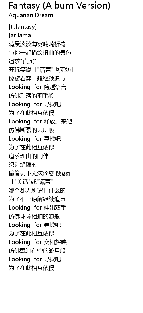 | [02:25.255] | Looking for 寻找吧 |