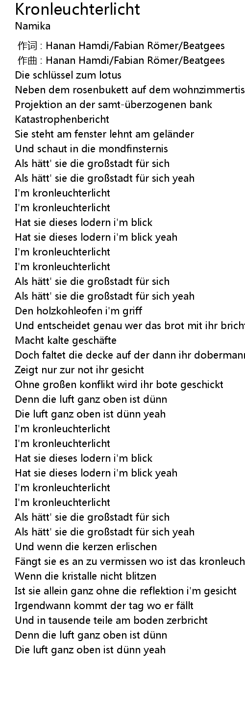| Song | Kronleuchterlicht |