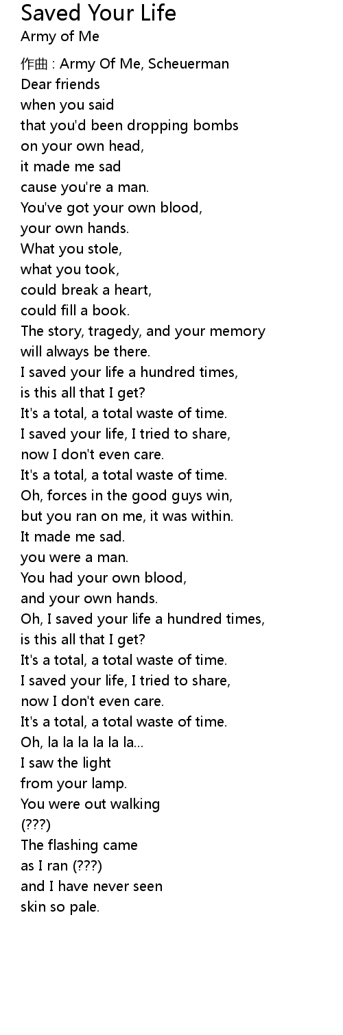 | Song | Saved Your Life |