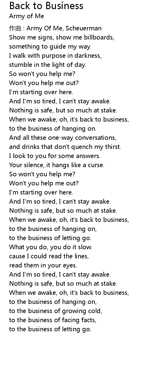 | When we awake, oh, it' s back to business, | |