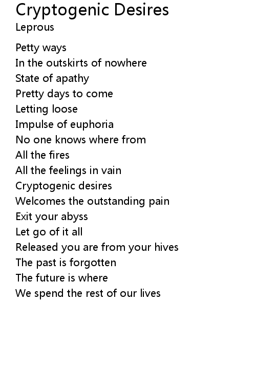| Cryptogenic desires | |
