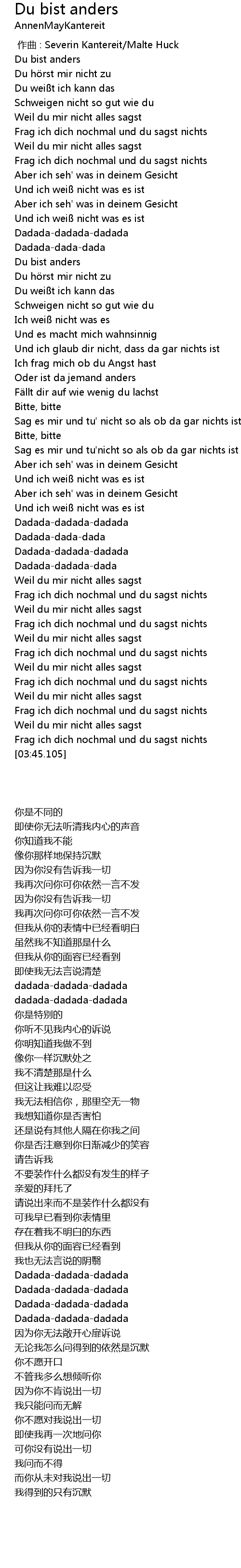 | [01:29.145] | Schweigen nicht so gut wie du |