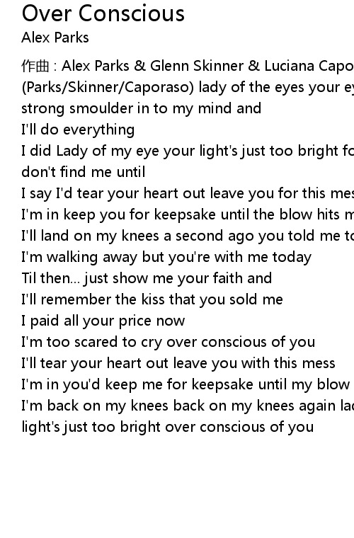 | I' m back on my knees back on my knees again lady of the eyes lady of my eye your light' s just too bright over conscious of you |