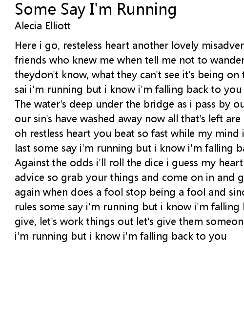 The water's deep under the bridge as i pass by our old house up on the ridge all our sin's have washed away now all that's left are all the things we did't say oh restless heart you beat so fast while my mind is telling me that it won't last some say i'm running but i know i'm falling back to you |