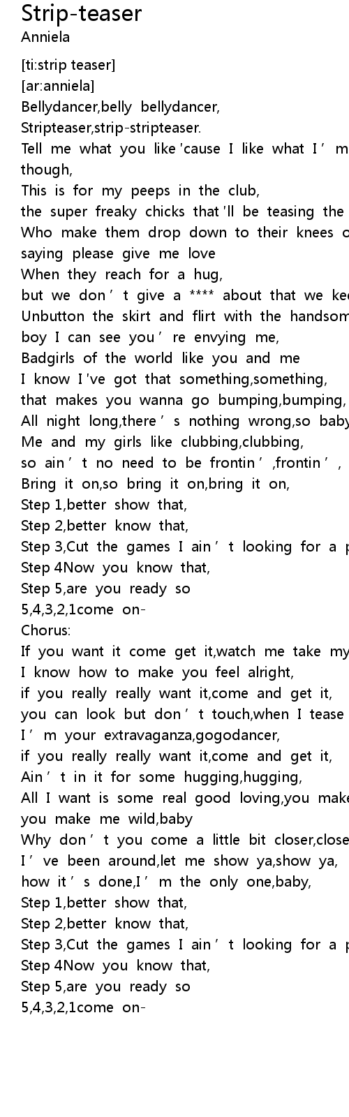 | [00:07.44] | Stripteaser,strip-stripteaser. |