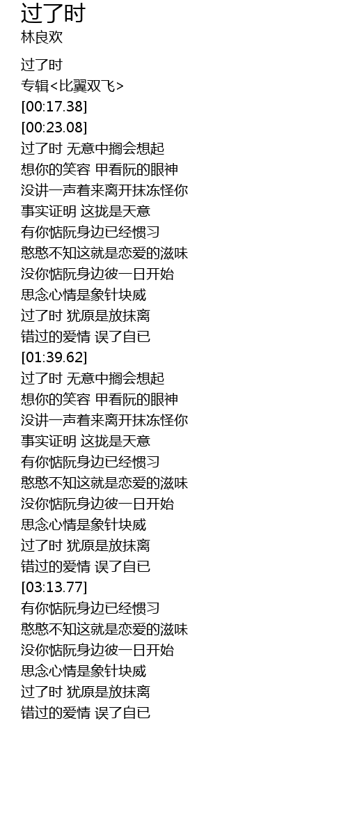 | [03:41.99] | 过了时 犹原是放抹离 |