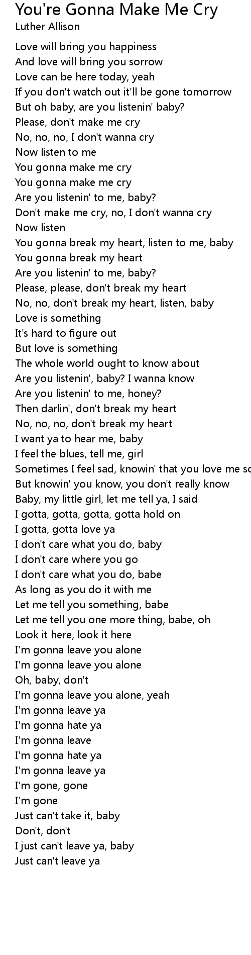 You gonna make me cry |