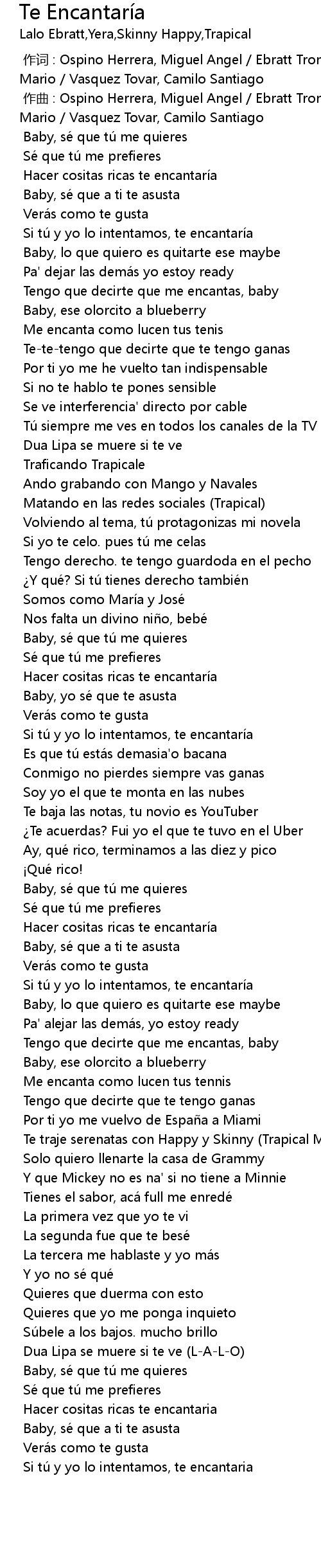 | [00:00.000] | 作词 : Ospino Herrera, Miguel Angel / Ebratt Troncoso, Eduardo Mario / Vasquez Tovar, Camilo Santiago |