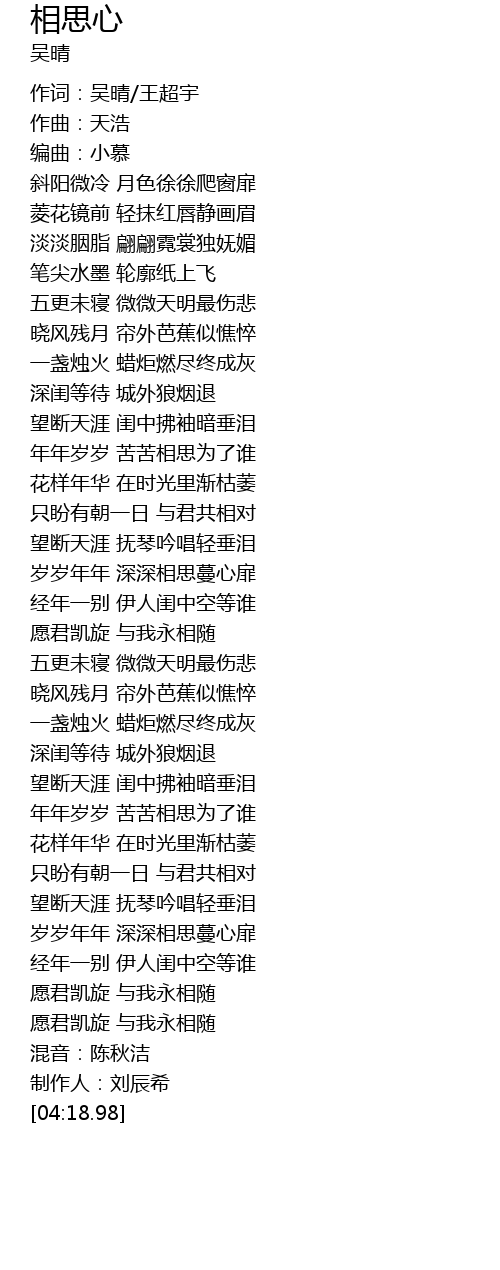 | [03:19.36] | 年年岁岁 苦苦相思为了谁 |