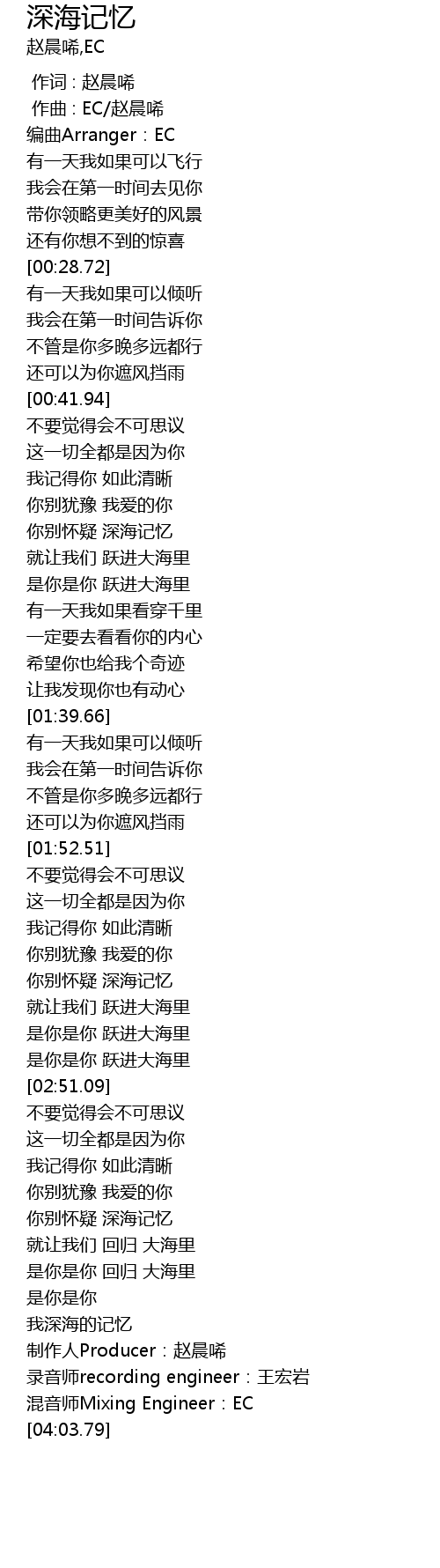 | [03:47.88] | 我深海的记忆 |