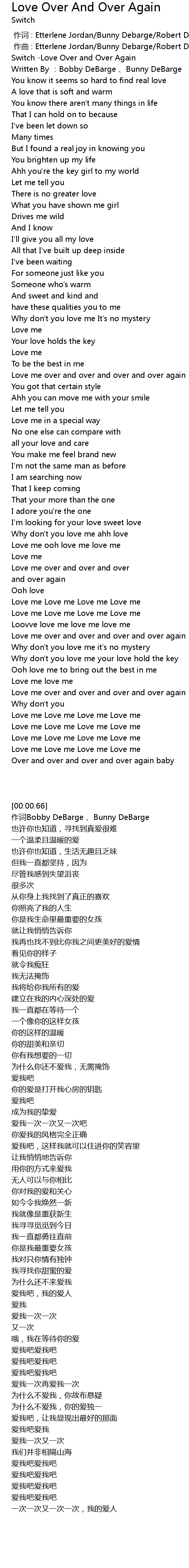 | [00:00.66] | Switch Love Over and Over Again |
