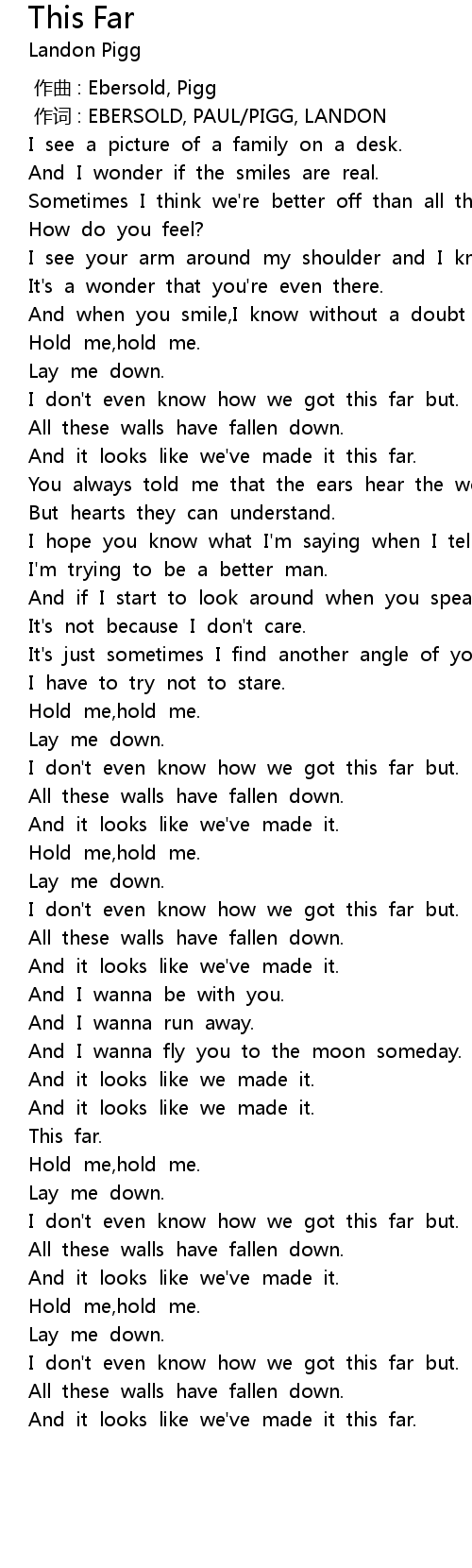 | [00:01.00] | 作词 : EBERSOLD, PAUL/PIGG, LANDON |