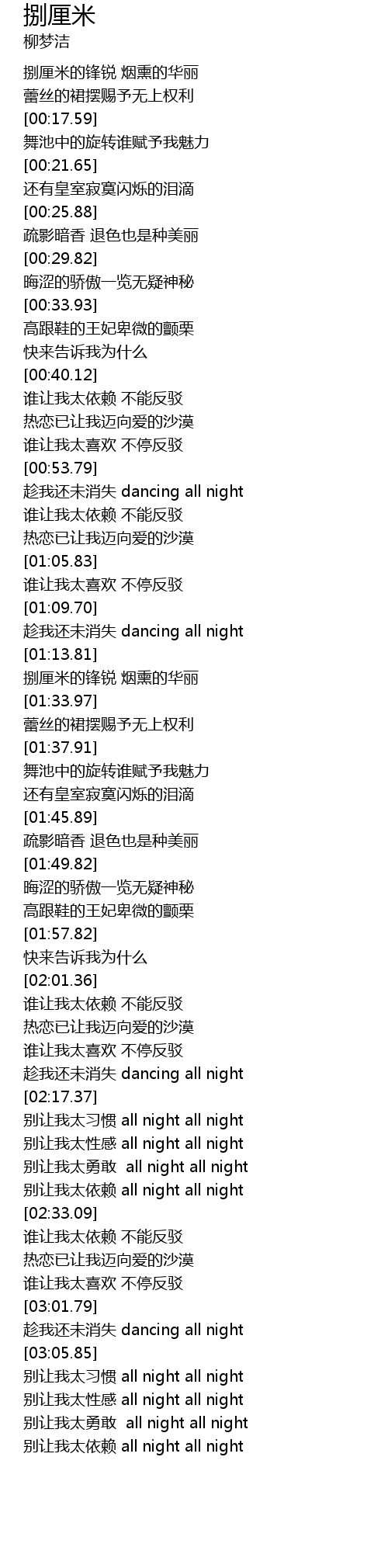 | [03:02.37] | chen wo hai wei xiao shi dancing all night |