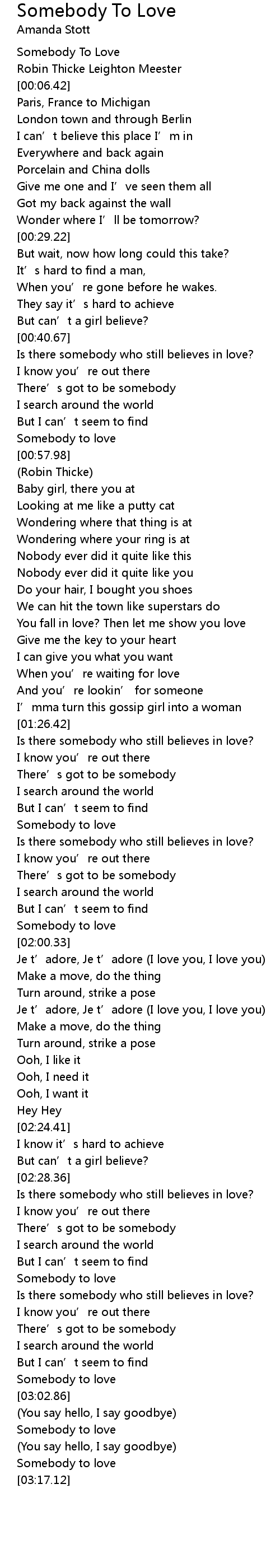 | [03:13.73] | Somebody to love |