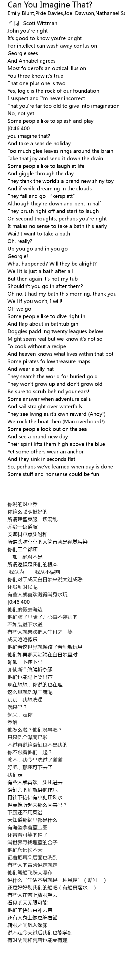 | [2:19.100] | Doggies paddling twenty leagues below |