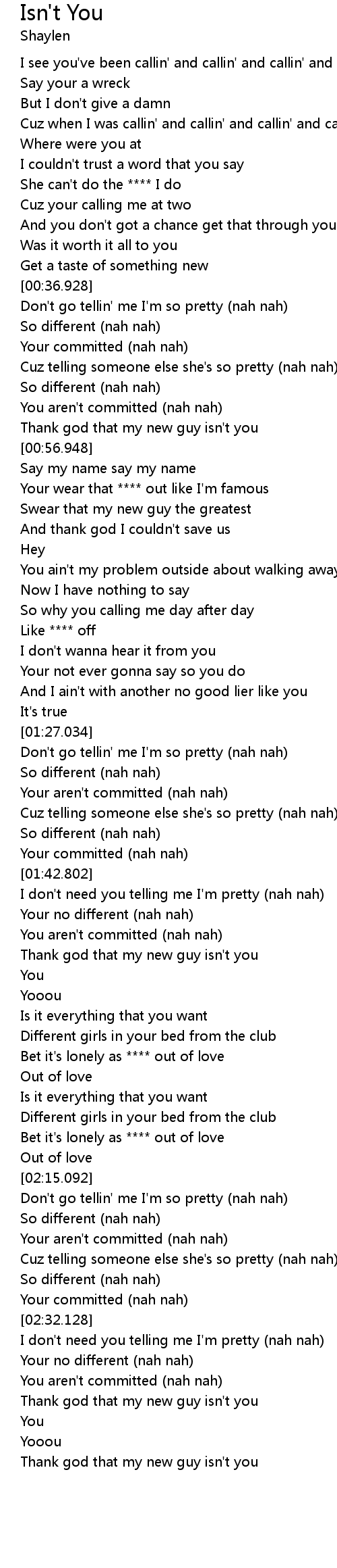 | [00:52.156] | You aren't committed (nah nah) |