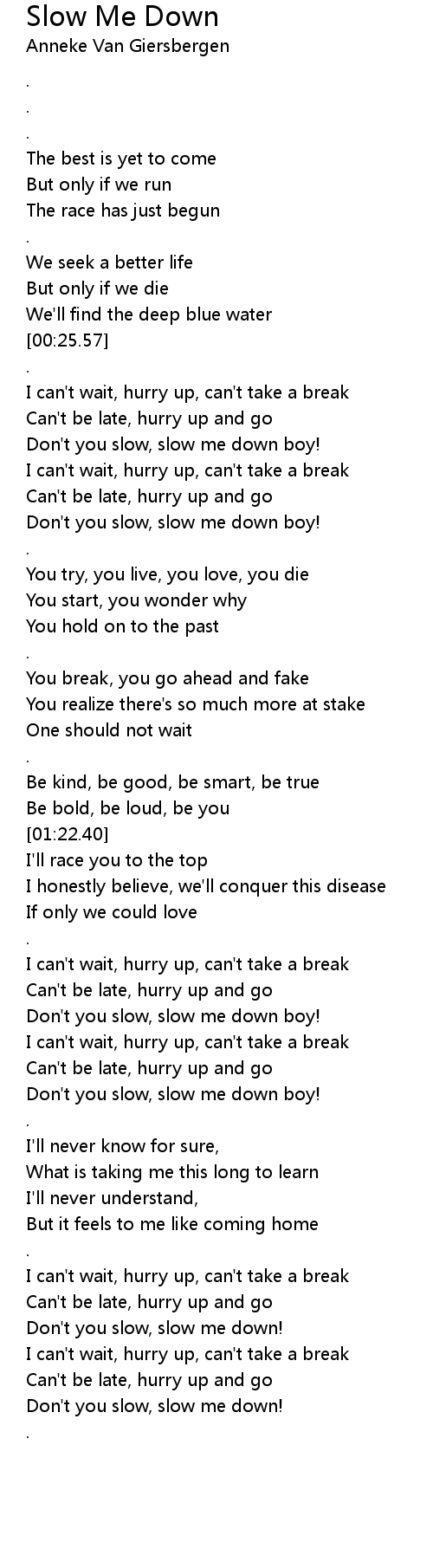 Don't you slow, slow me down! |