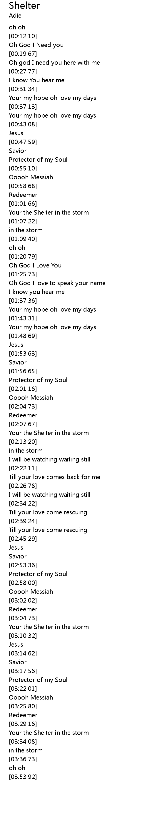 Your the Shelter in the storm |