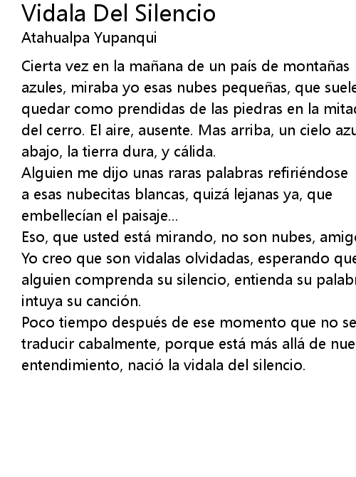 | entendimiento, nació la vidala del silencio. |