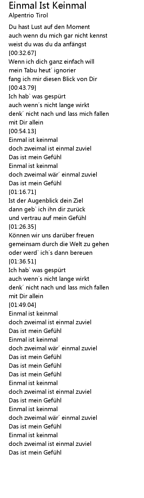 | [02:54.81] | Einmal ist keinmal |