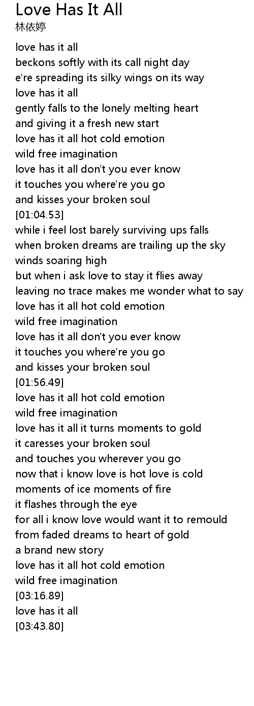 | [00:22.81] | love has it all |
