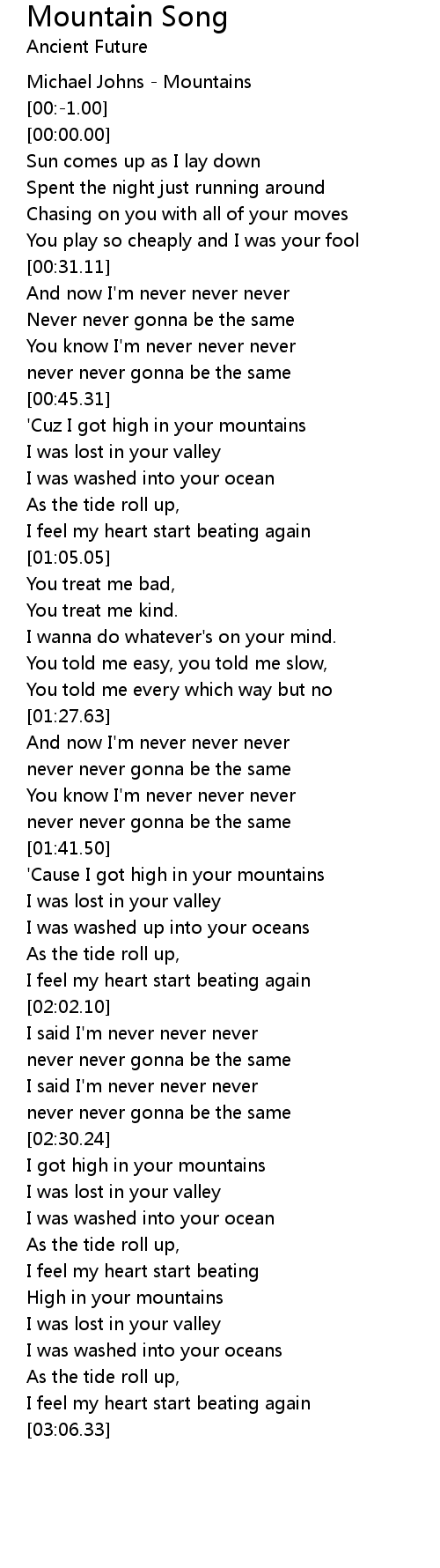 'Cuz I got high in your mountains |