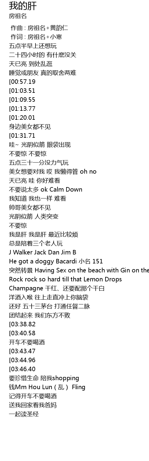 | [03:58.50][03:46.40] | kāi chē Please don' t Drink |