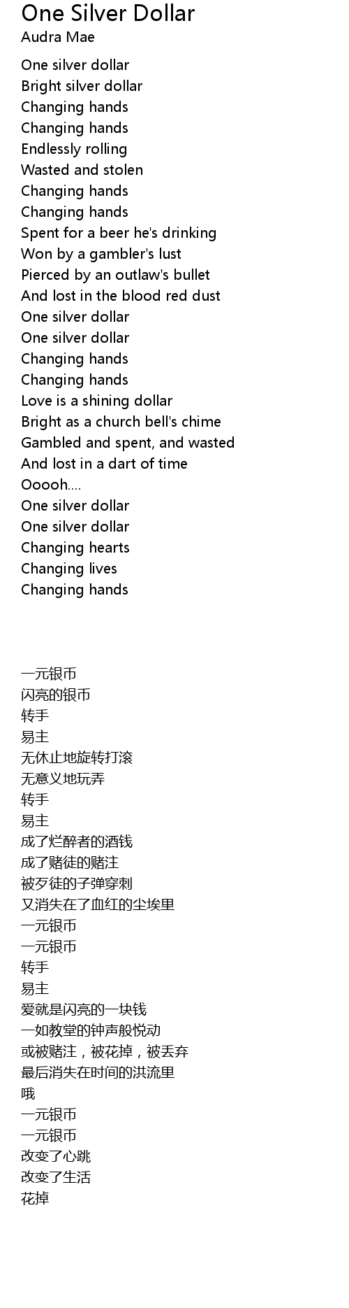 | [00:15.39] | One silver dollar |