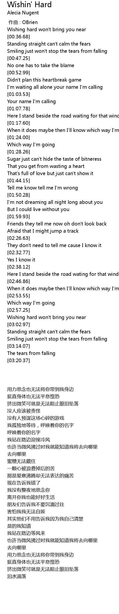 | [00:57.64] | I' m waiting all alone your name I' m calling |