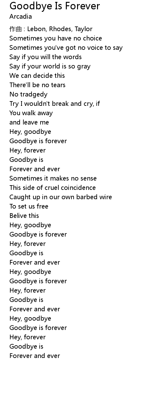 | Song | Goodbye Is Forever |