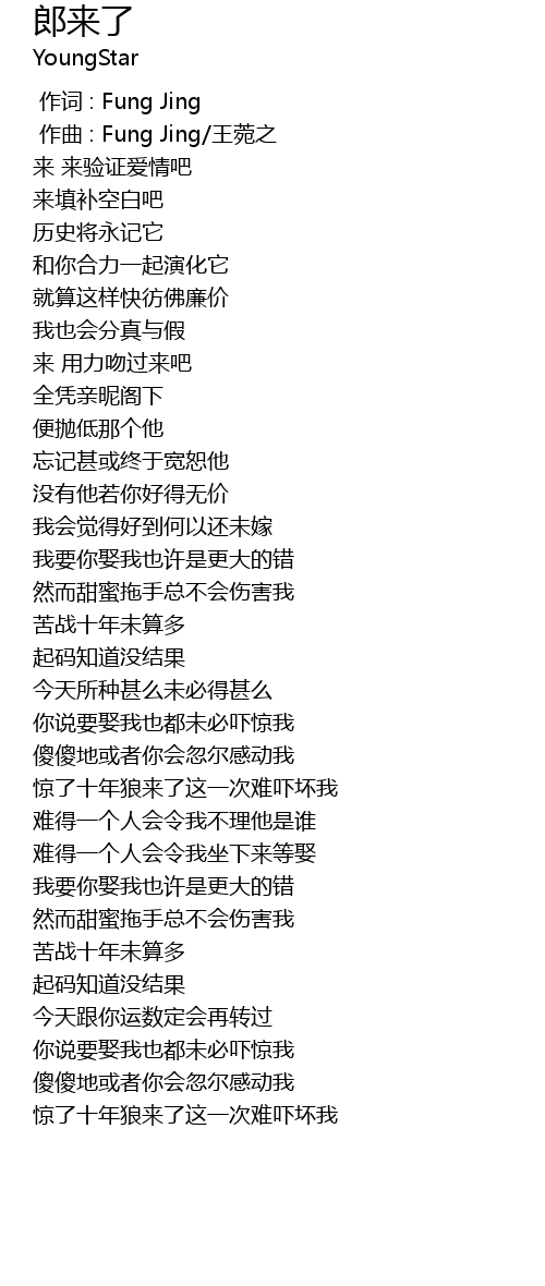 | [00:01.000] | zuò qǔ : Fung Jing wáng wǎn zhī |