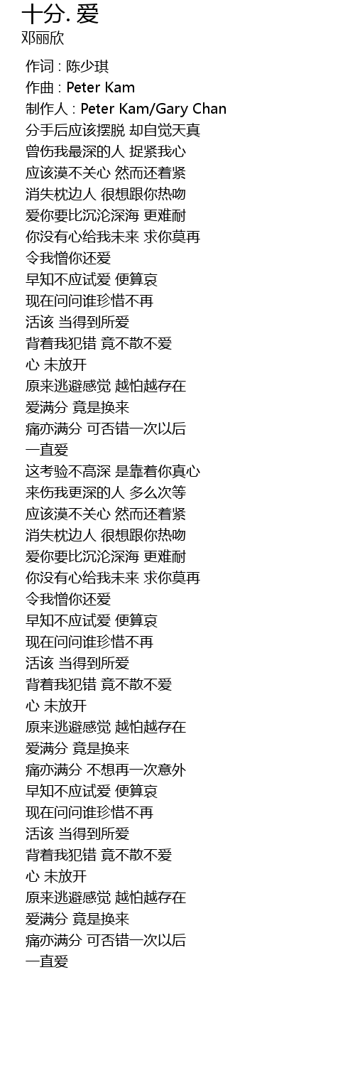 | [00:02.000] | 制作人 : Peter Kam/Gary Chan |