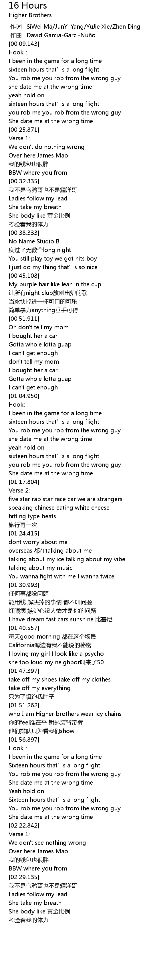 | [01:51.340] | who I am Higher brothers wear icy chains |