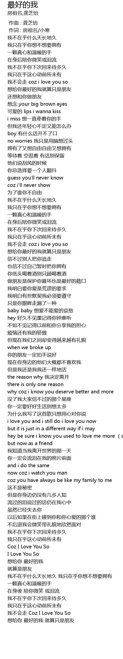 | [00:22.970] | wo bu hui zou coz i love you so |