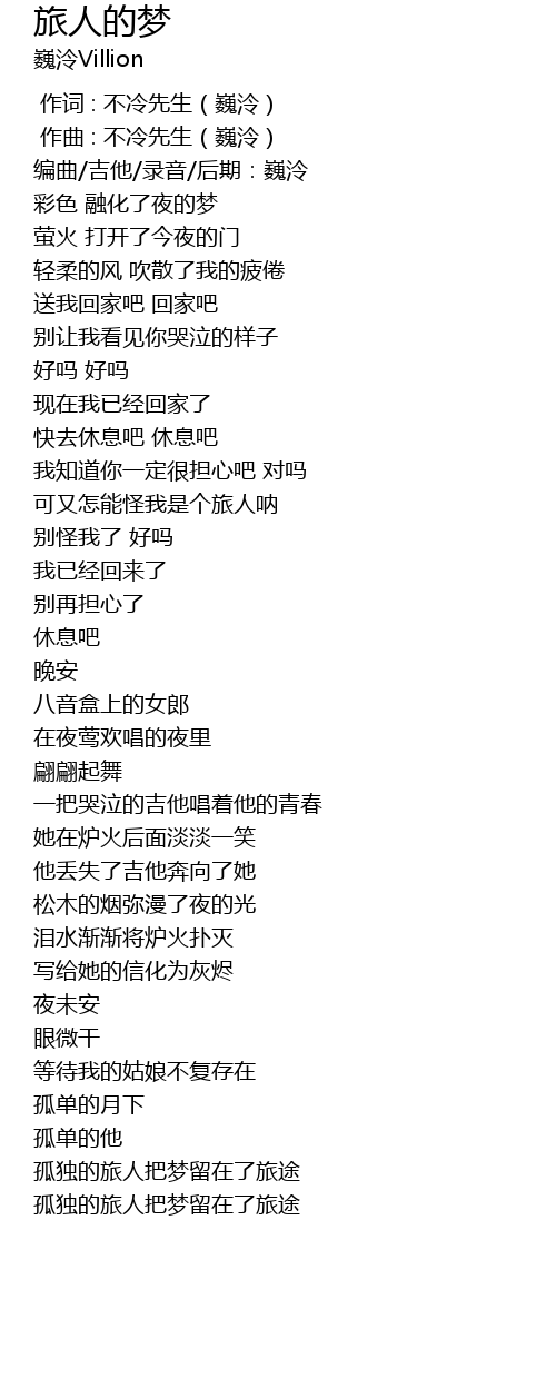 | [03:26.747] | 孤独的旅人把梦留在了旅途 |