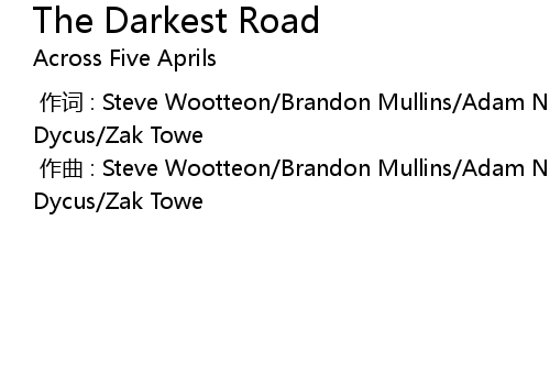 | [00:00.000] | 作曲 : Steve Wootteon/Brandon Mullins/Adam Nordmeyer/Josh Dycus/Zak Towe |