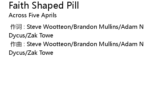 | [00:00.000] | 作曲 : Steve Wootteon/Brandon Mullins/Adam Nordmeyer/Josh Dycus/Zak Towe |