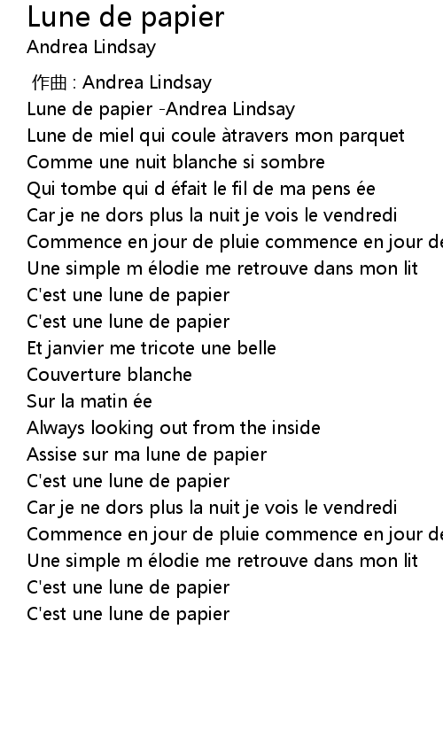 | [00:01.220] | Lune de papier -Andrea Lindsay |