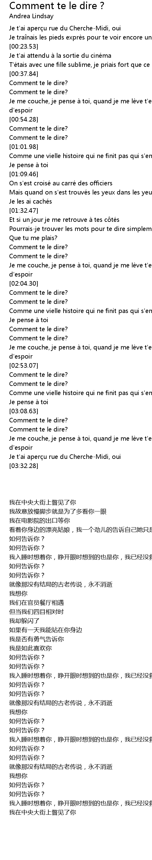 | [00:08.34] | Je t'ai aperçu rue du Cherche-Midi, oui |