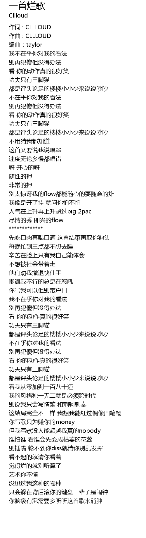 | 但我写歌没人能超越我真的nobody | |