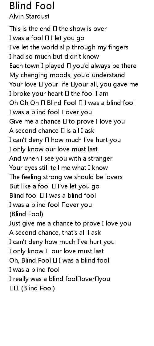 | Oh Oh Oh Blind Fool I was a blind fool | |