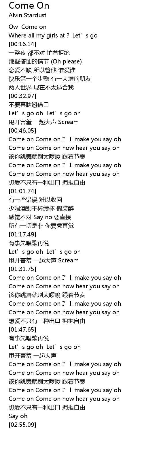 | [00:46.91] | Come on Come on I’ll make you say oh |