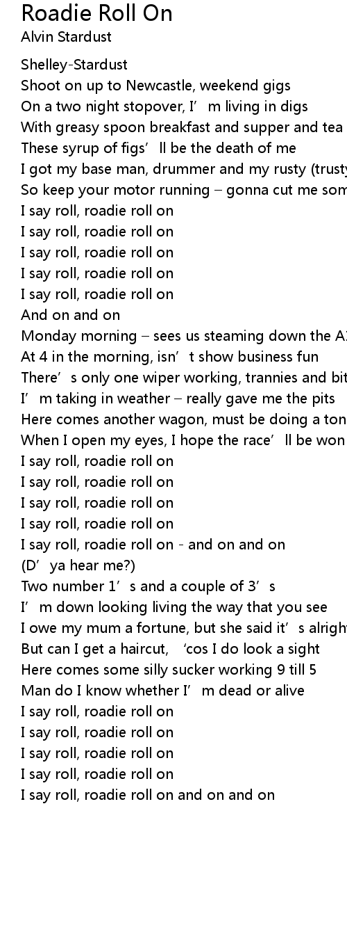 | I say roll, roadie roll on and on and on |