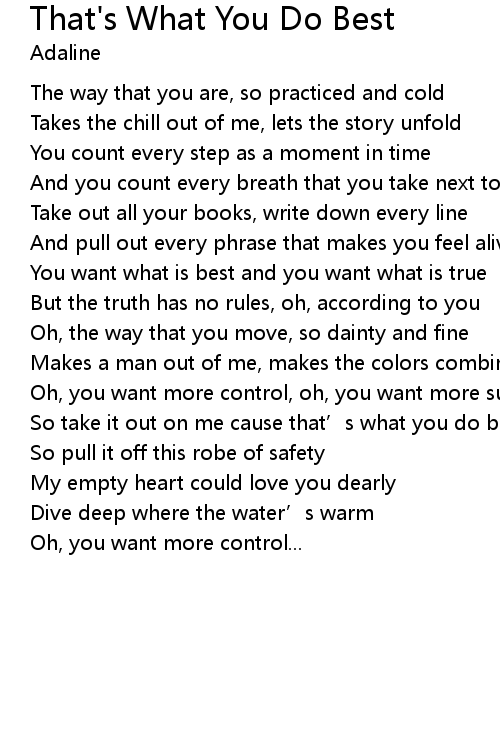 | Song | That's What You Do Best |