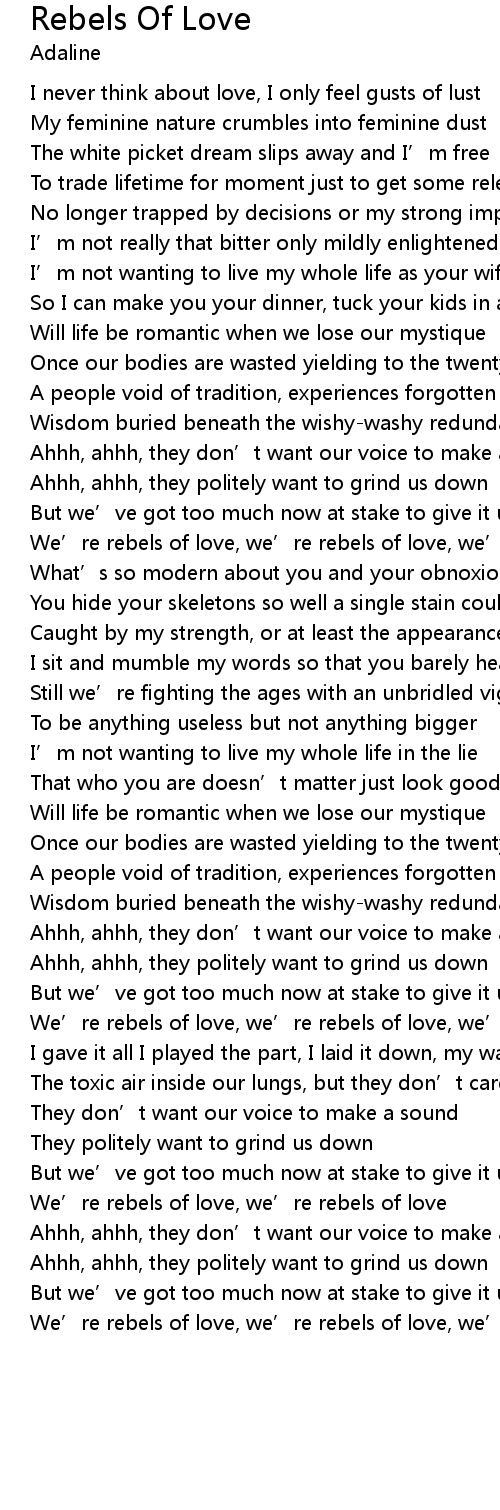 | We’re rebels of love, we’re rebels of love, we’re rebels of love |