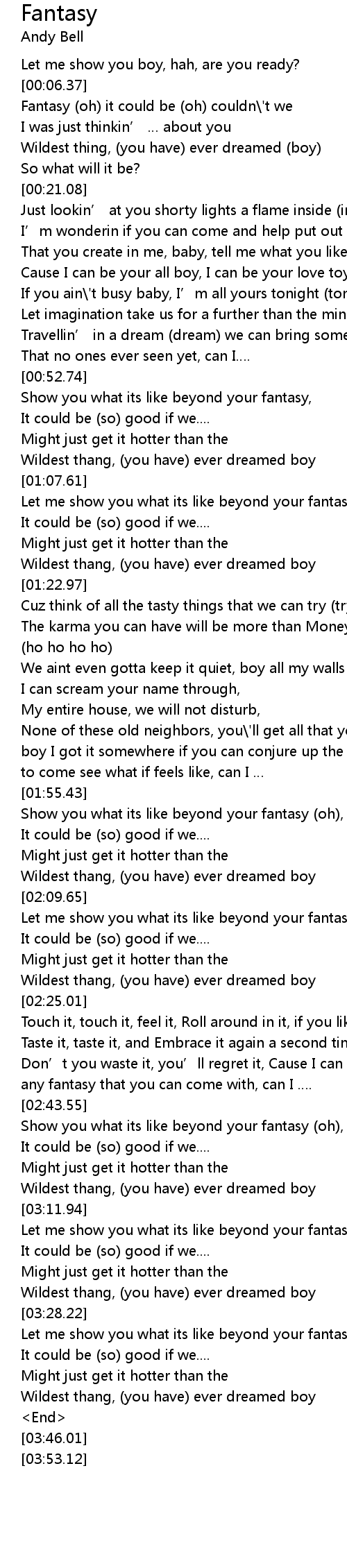 | [03:23.51] | Wildest thang, (you have) ever dreamed boy |