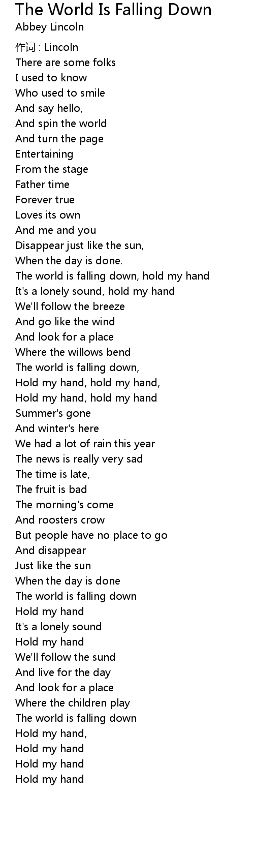 | The world is falling down, hold my hand | |