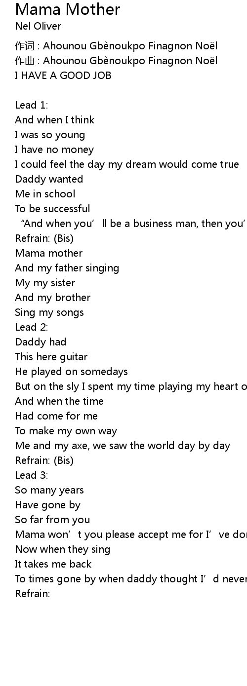 | Song | Mama Mother |