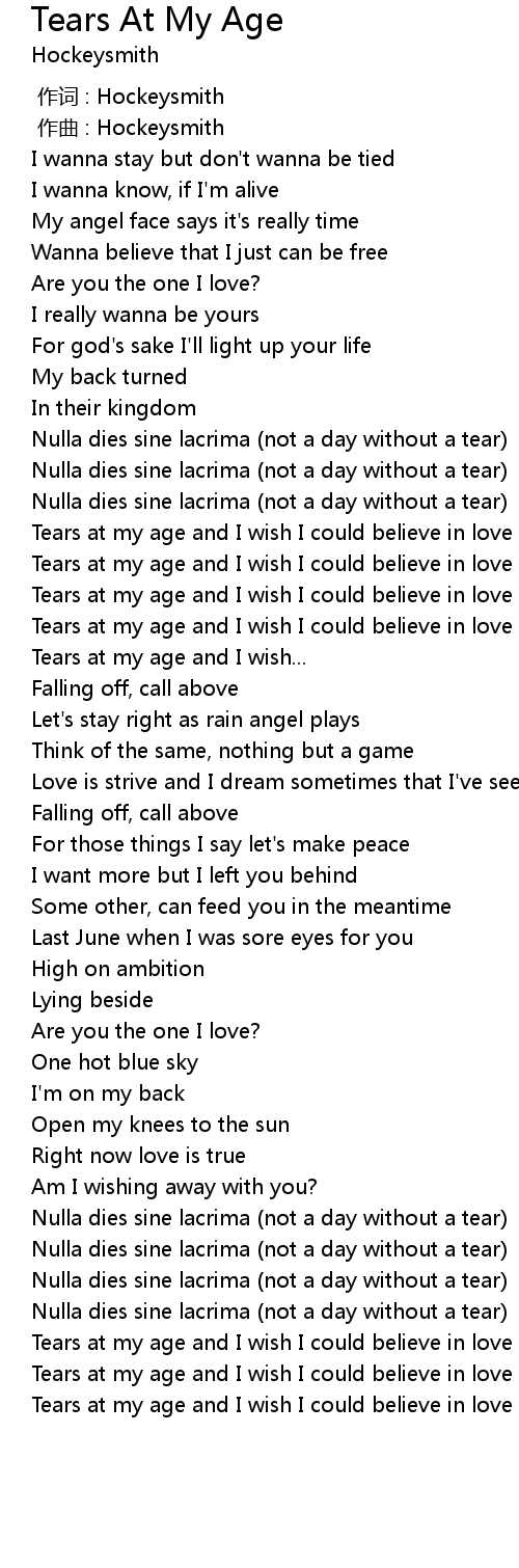 | [01:28.743] | Tears at my age and I wish I could believe in love |
