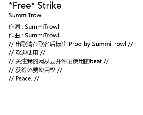 | // 出歌请在歌名后标注 Prod by SummiTrowl // | |